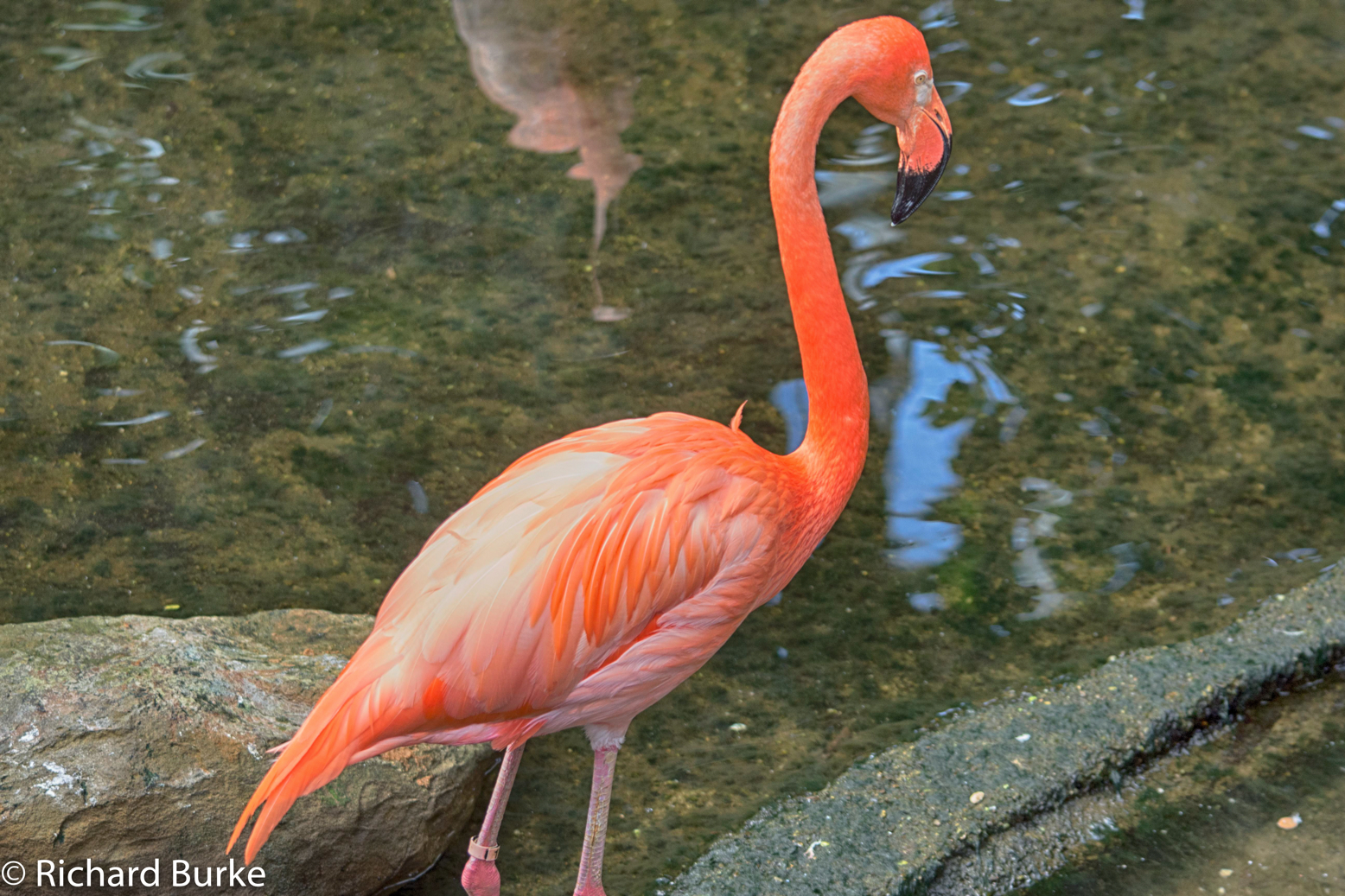 On July 18th I published an article on the baby flamingos when they were just 10 days old. They could barely walk. They have grown a lot and even are testing their wings. The blue bands are to strengthen their legs for wading.