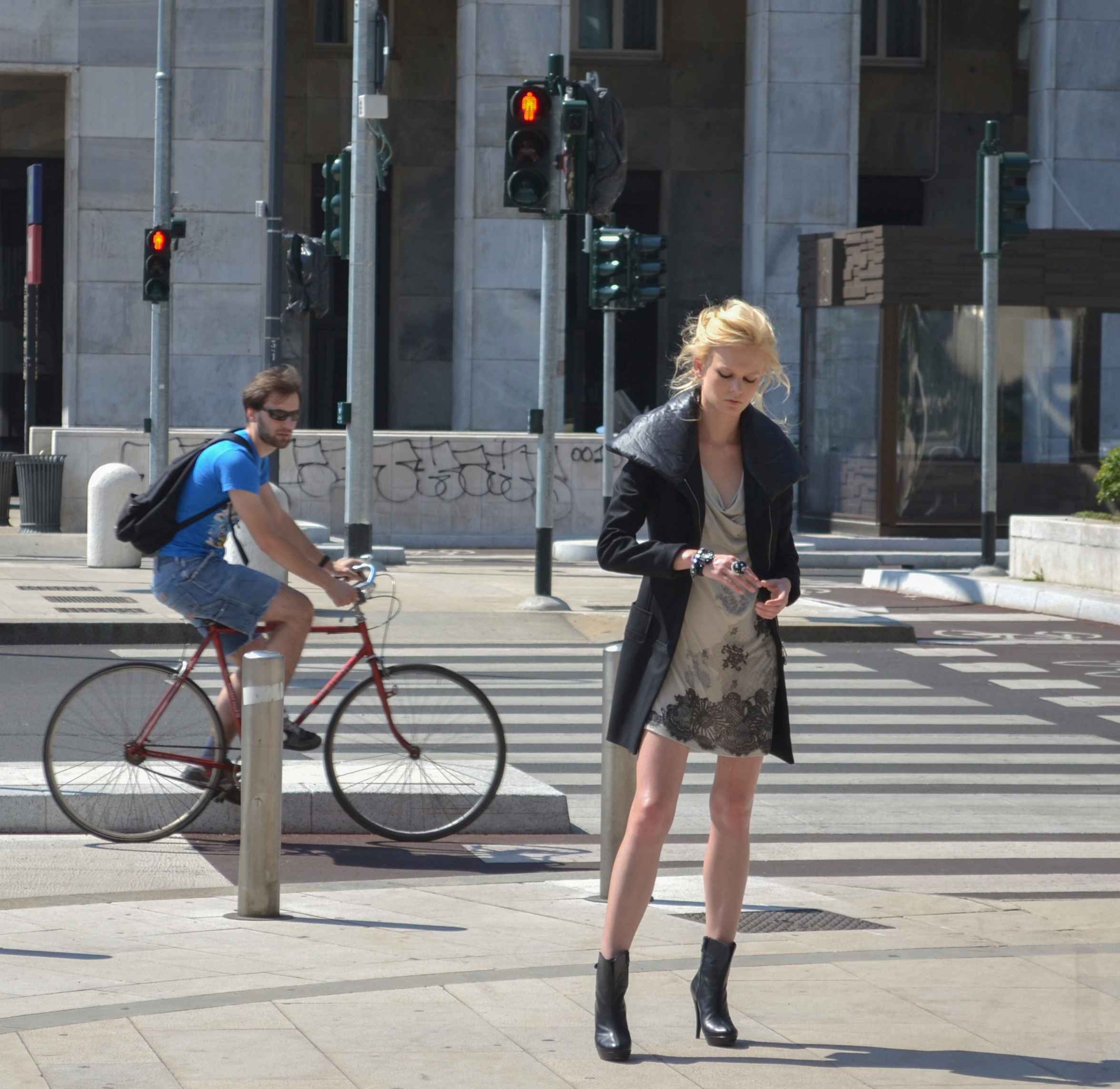 This image was taken in 2009 in Milan Italy and is entitled The Model and the Cyclist.